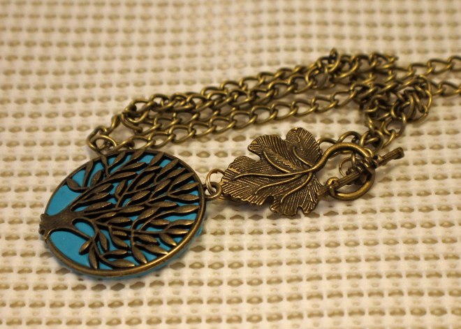 Previous ImageNext Image tree of life pendant and leaf small Tree of life turquoise polymer clay pendant TRee of life with turquoise polymer clay backing in chain with leafs shaped toggle clasp. Like Loading...