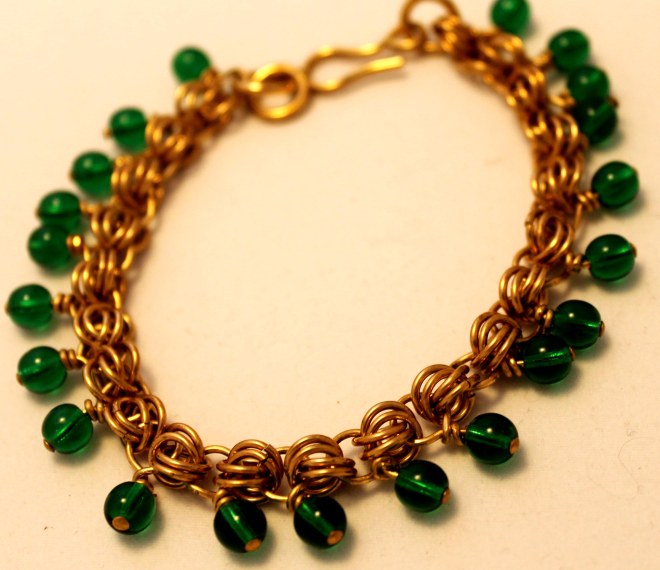 C112 Beaded Dubious chainmaille Bronze & green