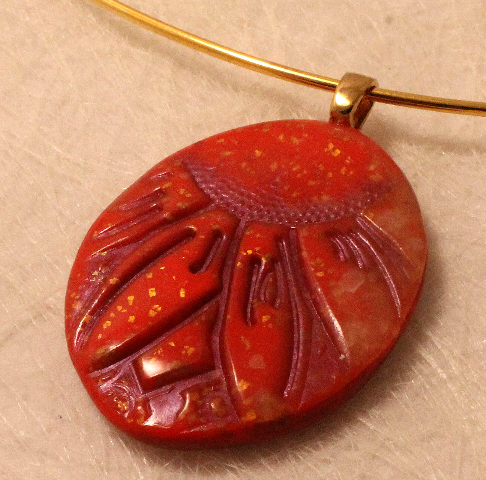 Previous ImageNext Image chinese red daisy pendant 1 Beautiful oval shaped polymer clay pendant with stamped flower design. Like Loading...