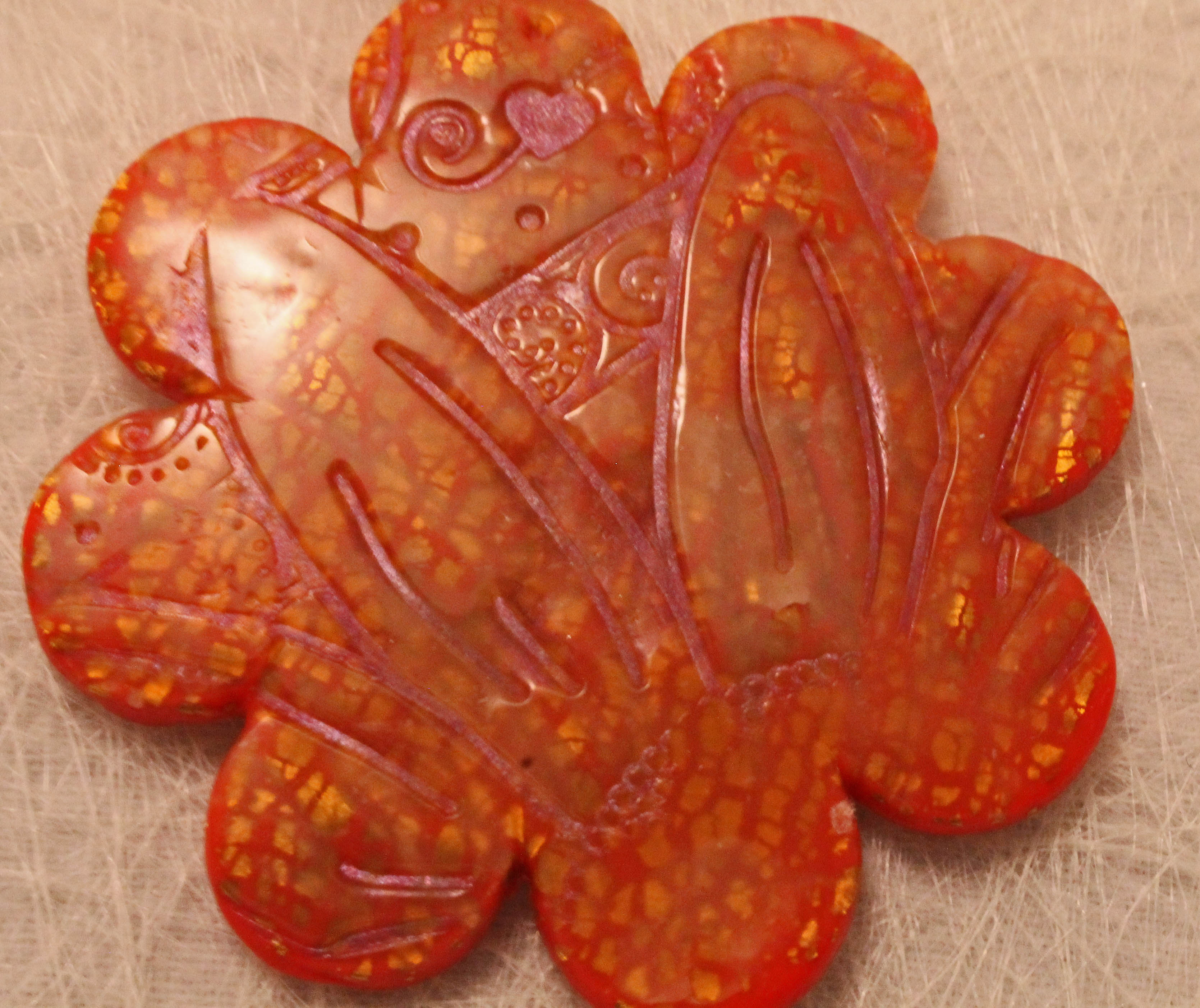 Next Image red hand polished flower shape pendant front 3 Red hand polished flower shaped stamped pendant. Like Loading...