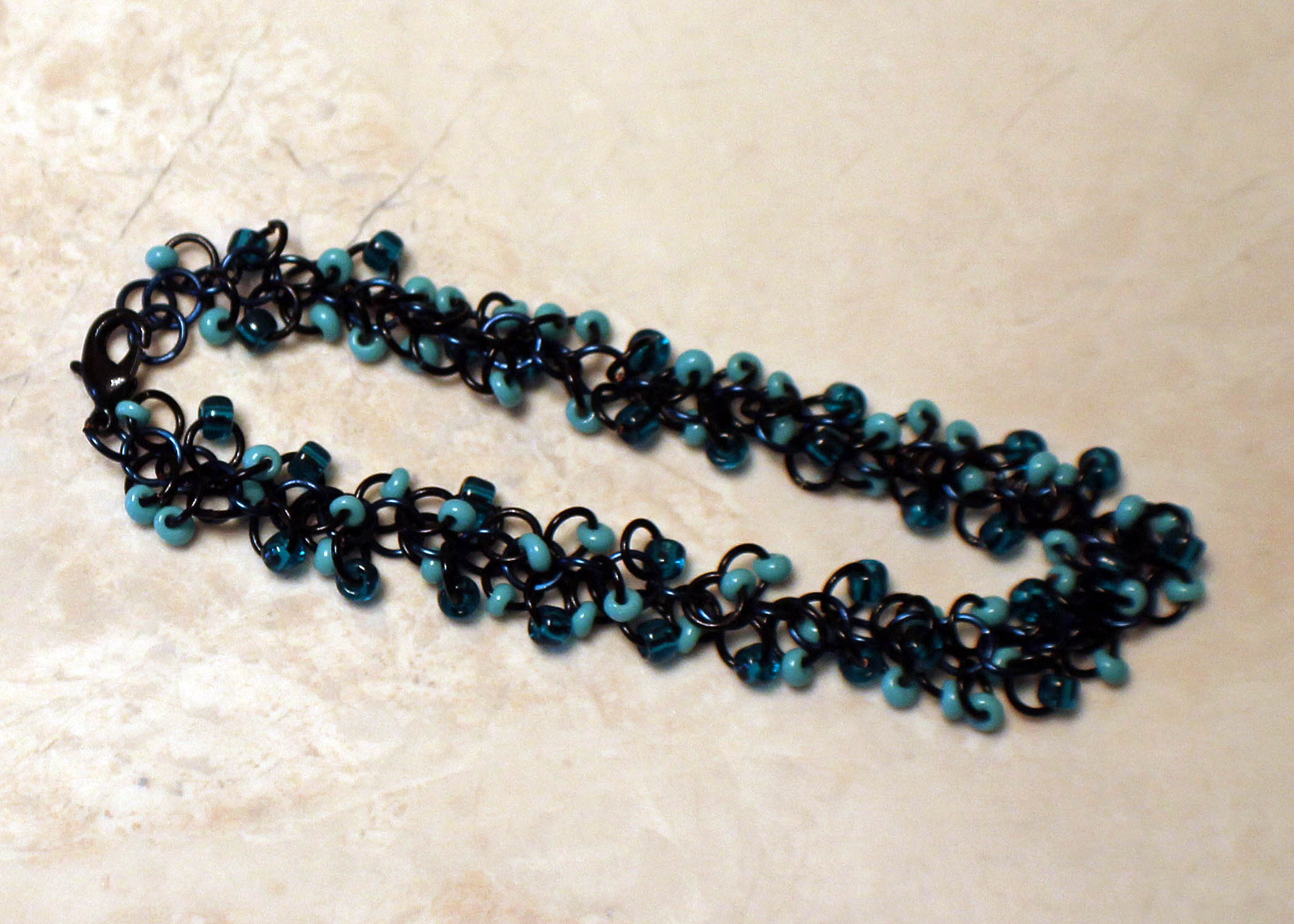 Shabby rings Turquoise seed beads and Black alluminium